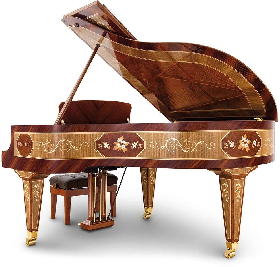 A Bösendorfer Grands nem csak befektetési tárgy, hanem olyan érték, amely több generációt is tart. Szakképzett Bösendorfer kézművesek feltárják a Bösendorfer hangjának belső színét, egyedülálló színét, dinamikáját és kifejeződését. Tökéletesen generált. A Bösendorfer kézművesek elkötelezettségét egy évig veszi igénybe a Bösendorfer Grand építéséhez. Személyes érintés, amit érzékel a játék pillanatában. Osztrák minőség, bécsi lélek.