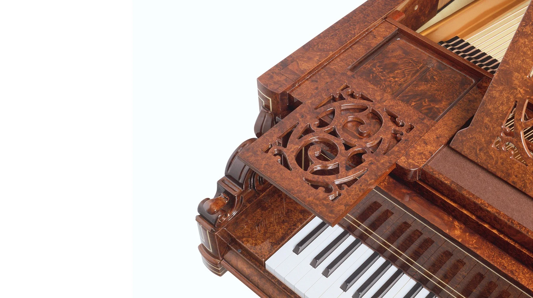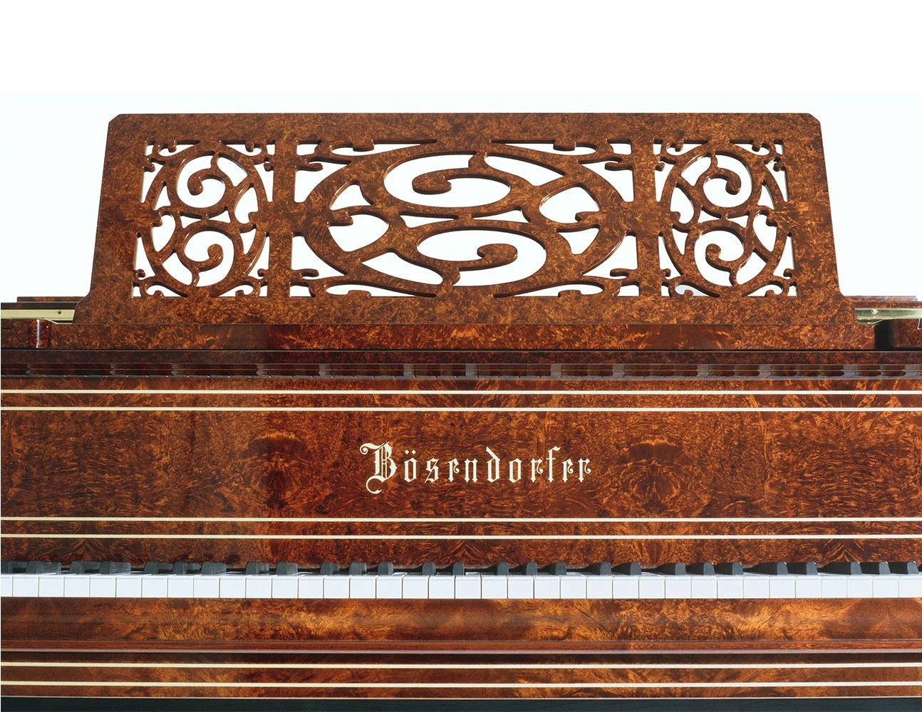 Bécs városa, mint semmi más, évszázadok óta a zene és a művészet fókuszpontja. Az olyan nevek, mint a Bécsi Filharmonikusok, a Bécsi Fiúkórus és a Bécsi Keringő világhírűek, és a zene városának nagykövetei. Bösendorfer Grand Vienna tiszteleg a város előtt, amelyet Bösendorfer közel két évszázada otthonának nevezett. Finom formák, kifinomult intarzia és az értékes Amboyna furnér válogatott alkalmazása kiegészíti ezt a zongorát, amely ötvözi zenei örökségünket a mesteri kivitelezéssel. A gyönyörű kottatartó két oldalán elhelyezett díszes gyertyatartók a bécsi nagymesterek alkotásainak szentelt végtelen éjszakai órákra emlékeztetnek. Ezen a hangszeren játszva megelevenednek a kompozíciók, és megszólaltatják Bécs dallamait.