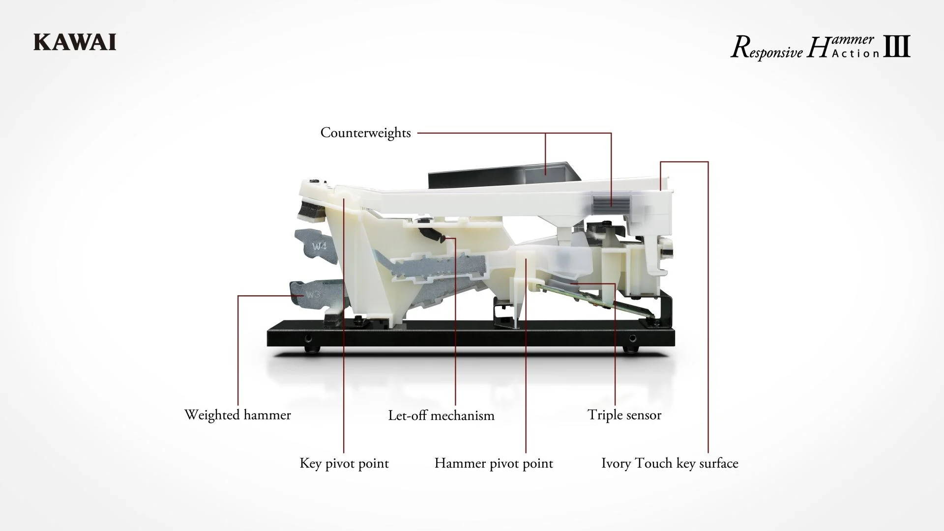 Kategóriájában a legautentikusabb digitális mechanikaként, a Responsive Hammer III reprodukálja az eredeti mechanika kioldás-pont jellemzőit. Imitálja a metsző érzetet, mely finomabb játéknál tapasztalható, segítve a gyakorlott zongoristákat precízen kifejezni a pianissimo részeket.