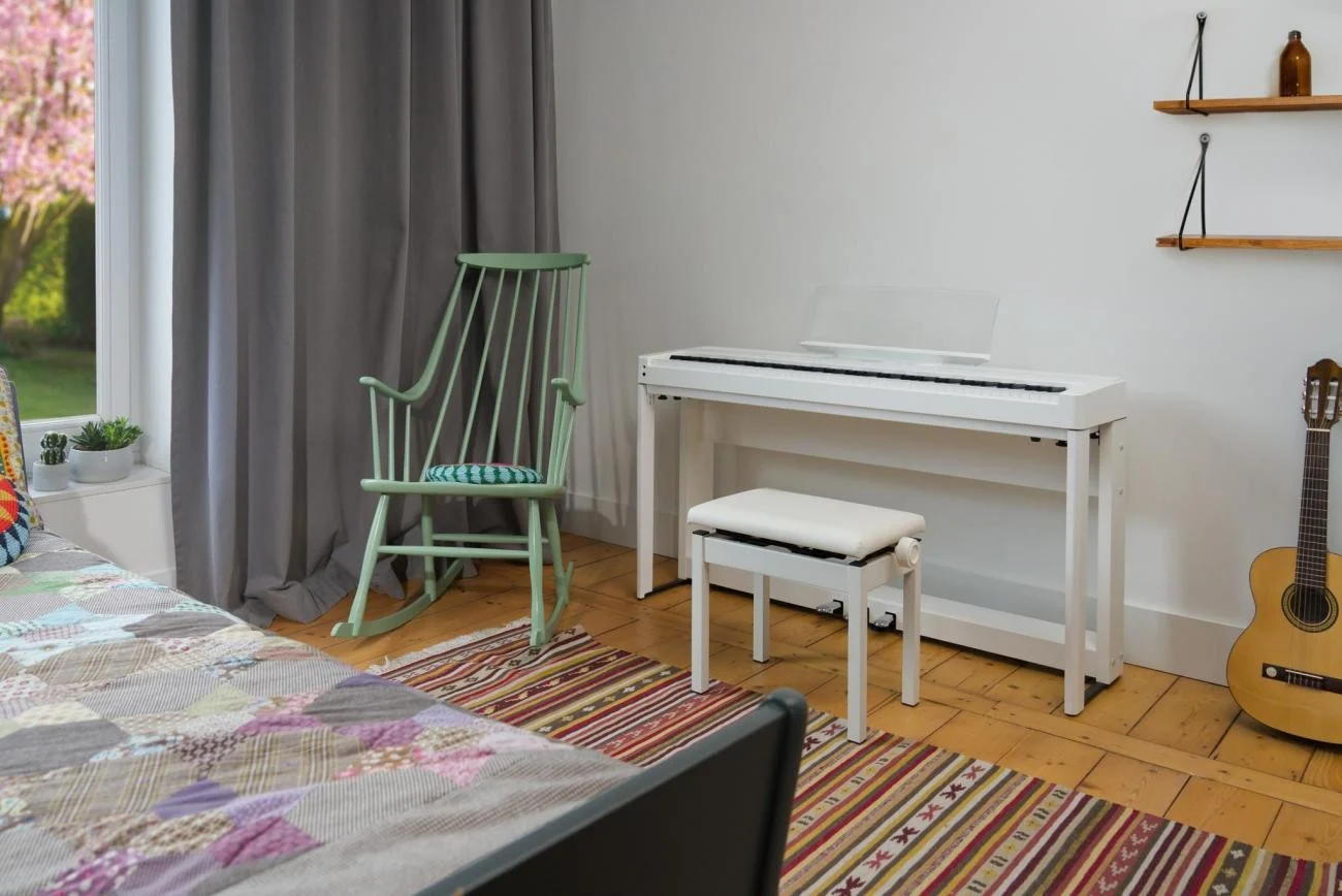 A hangszerek stabil teste meglepően könnyű, az ES520 mindössze 14,5 kg. Mivel az ES520 a saját osztályuk leghordozhatóbb zongorája, kiváló választás a koncertezéshez, vagy stúdiózenészek, ugyanakkor ideálisak tudományos és vallási intézmények számára is. Sőt, ha a dedikált HM-5 állványhoz csatlakozik F-302 hármas pedállal, fekete vagy fehér színben, ezek a sokoldalú eszközök stílusos, ultrakompakt kialakításúvá válnak,kivételes játékélményt nyújtva a nappaliban, az irodában vagy a hálószobában.