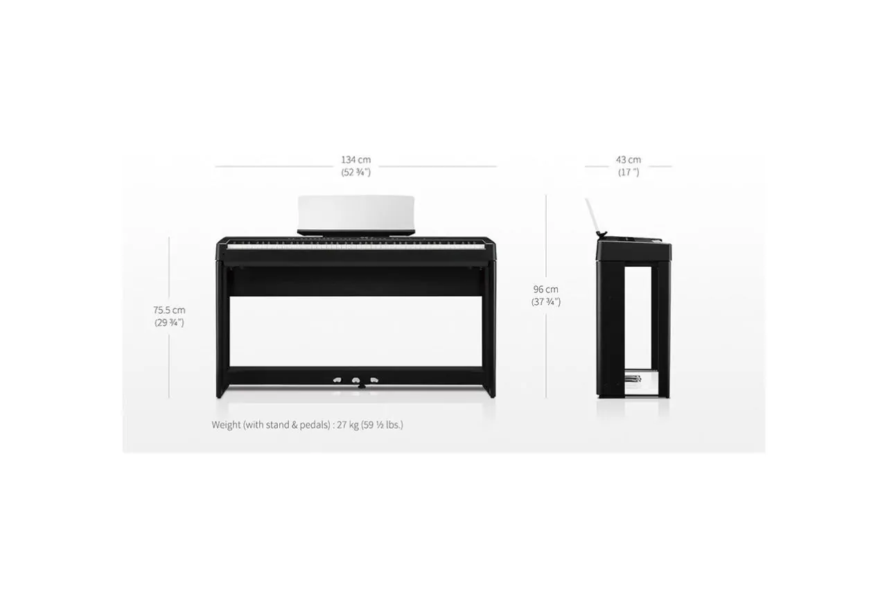 A hangszerek stabil teste meglepően könnyű, az ES520 mindössze 14,5 kg. Mivel az ES520 a saját osztályuk leghordozhatóbb zongorája, kiváló választás a koncertezéshez, vagy stúdiózenészek, ugyanakkor ideálisak tudományos és vallási intézmények számára is. Sőt, ha a dedikált HM-5 állványhoz csatlakozik F-302 hármas pedállal, fekete vagy fehér színben, ezek a sokoldalú eszközök stílusos, ultrakompakt kialakításúvá válnak,kivételes játékélményt nyújtva a nappaliban, az irodában vagy a hálószobában.
