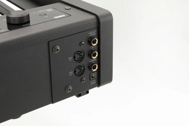 Szabványos méretű vonalkimenetek, fejhallgató kimenet, kitartópedál bemenet és MIDI ki/bemenetek