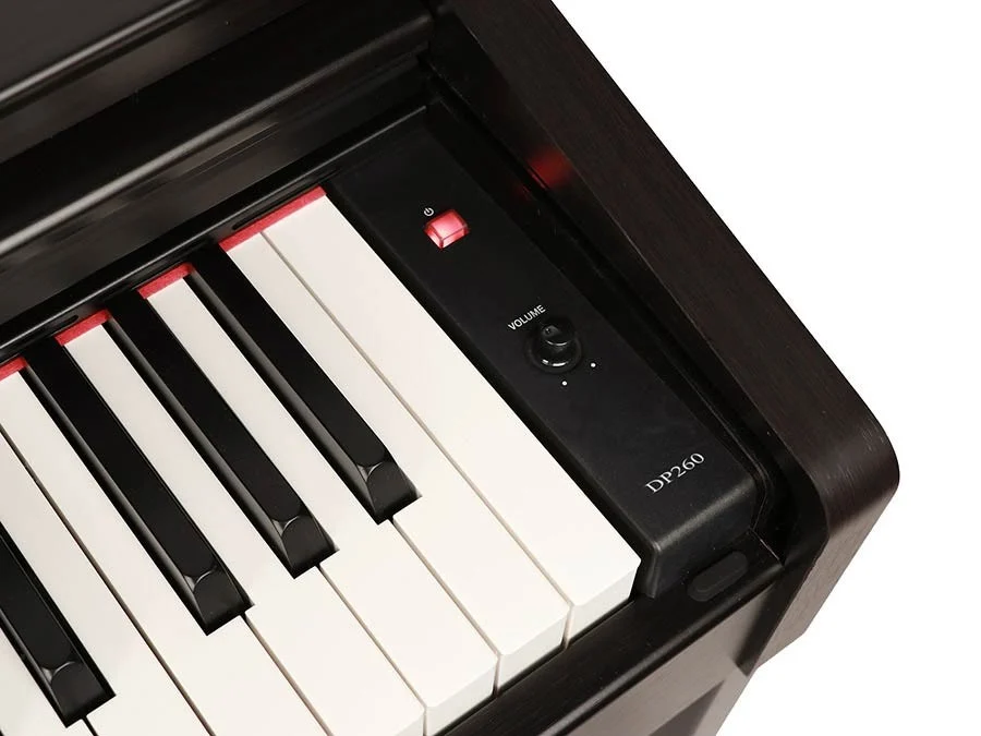 A Medeli DP260, egy zongora 88 súlyozott kalapácsmechanikás billentyűvel. A Medeli K6 billentyűzete egy teljesen súlyozott zongorabillentyűzetet kínál, amely tökéletesen alkalmazható zongorára és csak zongorázni. Szilárd billentyűzet jó kifejező tulajdonságokkal, a reális zongoraérzethez. A sebességérzékenységet természetesen a kívánt módon is beállíthatjuk.