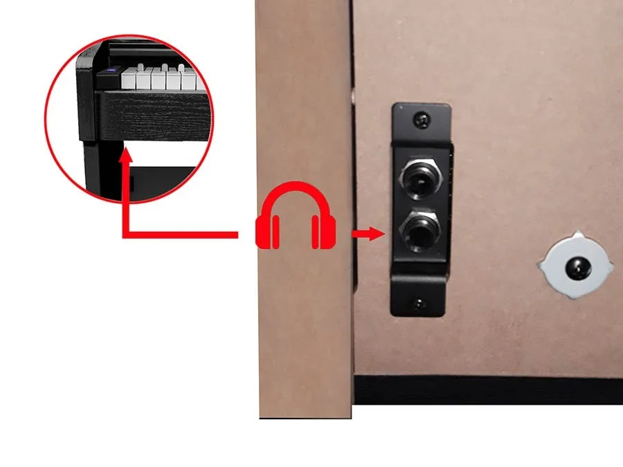 Csatlakozások: DC bemenet, fejhallgató (1/4 "sztereo jack), pedálok (Sustain, Soft, Sostenuto), USB,