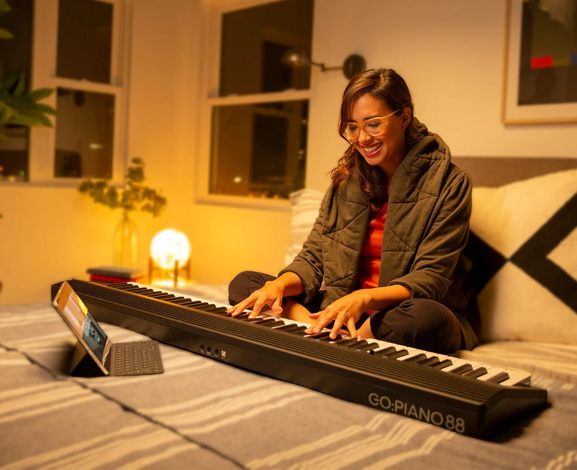 Az akusztikus zongora helyhez kötött hangszer, a hordozható elektronikus hangszerek megszokottnál kisebb billentyűzete pedig korlátozza a zenei lehetőségeket. A GO:PIANO88 és egy okostelefon viszont bárhová elkísérheti és mindig készen áll a pillanatnyi zenei ötletek kibontakoztatásához. Kompakt méretével, 7.0kg-os súlyával és elemes tápellátásával a GO:PIANO88 megszólaltatható saját hangszóróin vagy fejhallgatón keresztül is. Plusz vezeték nélküli kapcsolaton keresztül egy okostelefonnal bármikor és bárhol fejlesztheti zenei tudását, miközben a 88-billentyűs, teljes méretű klaviatúrán kompromisszumok nélkül finomíthatja zongoratechnikáját.