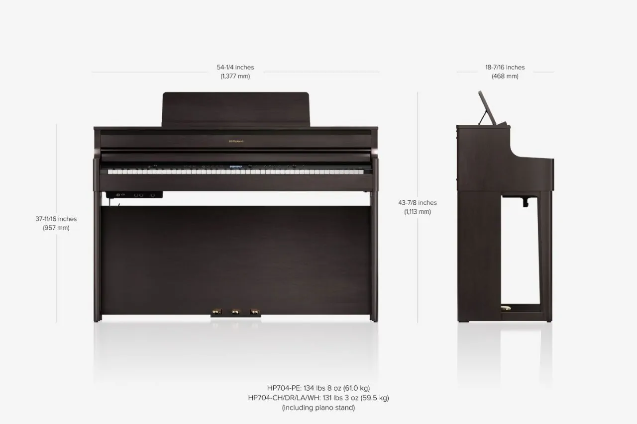 Nem árt, ha egy jó hangú hangszer jól is néz ki. A HP704 magas, mégis karcsú felépítése, elegáns lábai a frontoldalon és kifinomult vonalvezetése a Roland csúcsmodell LX sorozatának dizájnkoncepcióját idézik, minden pillanatban vonzzák a tekintetet és játékra invitálnak. A gondosan megtervezett színválasztéknak és precíz kidolgozásnak köszönhetően könnyedén kiválaszthatja azt a zongorát, amely legjobban illeszkedik otthonához. A hangszertestet a lehető legoptimálisabb hangzásra tervezték, függetlenül a zongora elhelyezésétől. Fényes fekete, sötétszürke, sötét rózsafa, világos tölgy és fehér színekben kapható.