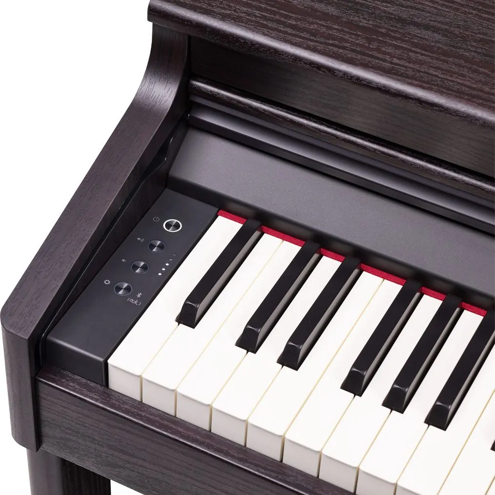 Egy jó zongora kiemelt helyet foglal el a családi bútordarabok között, ezért érdemes az életstílusnak, pénztárcának és vágyaknak megfelelő modellt választani. Az új Roland RP-701 tökéletes választás első zongorának, de a haladó igényeket is kiszolgálja. Ez a zongora számos gyakorlást segítő funkcióval rendelkezik, beleértve a beépített ritmus kíséreteket és a Bluetooth® csatlakoztathatóságot iPad/Android zongora alkalmazásokhoz. Szorgalmas gyakorlással más kezdő kategóriás hangszereket könnyű kinőni. Az RP-701 azonban hosszabb távon is kiszolgálja a növekvő igényeket, dinamikus billentyűzetének és autentikus, érzékeny hangjának köszönhetően. Számos prémium tulajdonságával, versenyképes árával, kompakt, de mégis masszív felépítésével a Roland